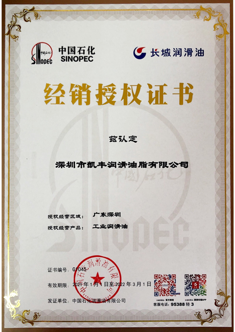 長城潤滑油經銷授權證書2021年(潤滑脂)